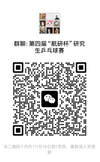 (1)比赛微信群:各学院参赛队伍领队需在报名截止前加入“第四届“航研杯”乒乓球赛领队”微信群,负责后续事宜的沟通与联系;
