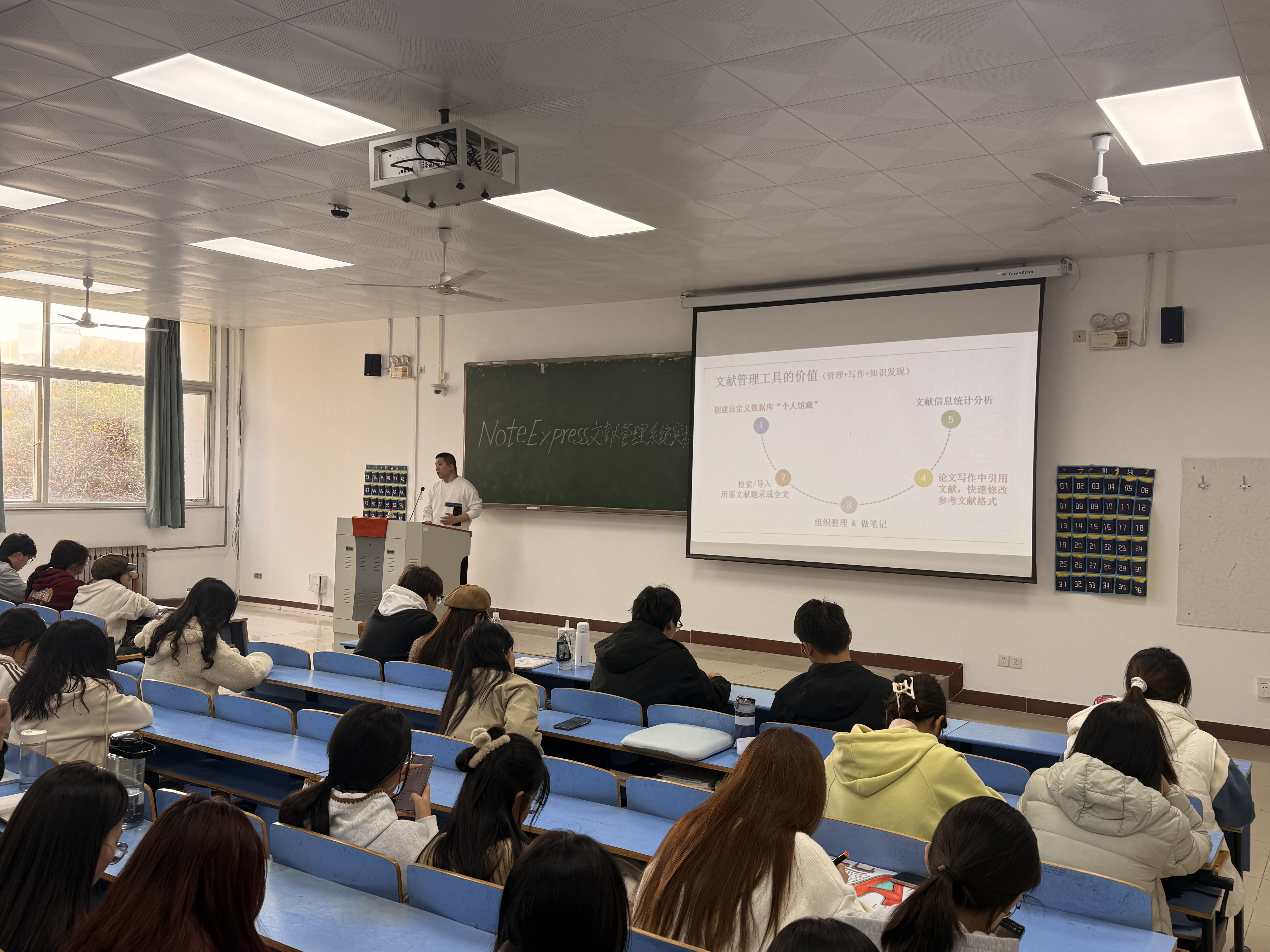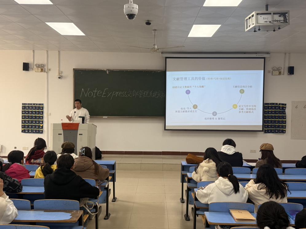 为深化研究生学术素养,构建系统化科研工作流程,“NoteExpress文献管理系统实操”主题学术讲座于11月13日在01B205教室成功举办。本次讲座特邀北京爱琴海乐之技术有限公司培训师韩建忠先生担任主讲人,从方法论与实践层面深度解析了文献管理在科研创新中的核心价值。